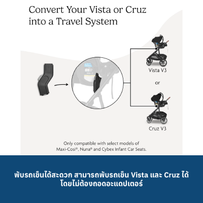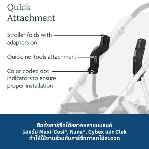 อะแดปเตอร์ชุดนี้ช่วยให้คุณสามารถติดตั้งคาร์ซีทสำหรับทารกของ Maxi-Cosi®, Nuna® หรือ Cybex เข้ากับโครงรถเข็น UPPAbaby ได้อย่างง่ายดาย ทำให้การพาลูกน้อยเดินทางจากรถไปสู่ท้องถนนเป็นเรื่องที่สะดวกสบายและราบรื่นยิ่งขึ้น
