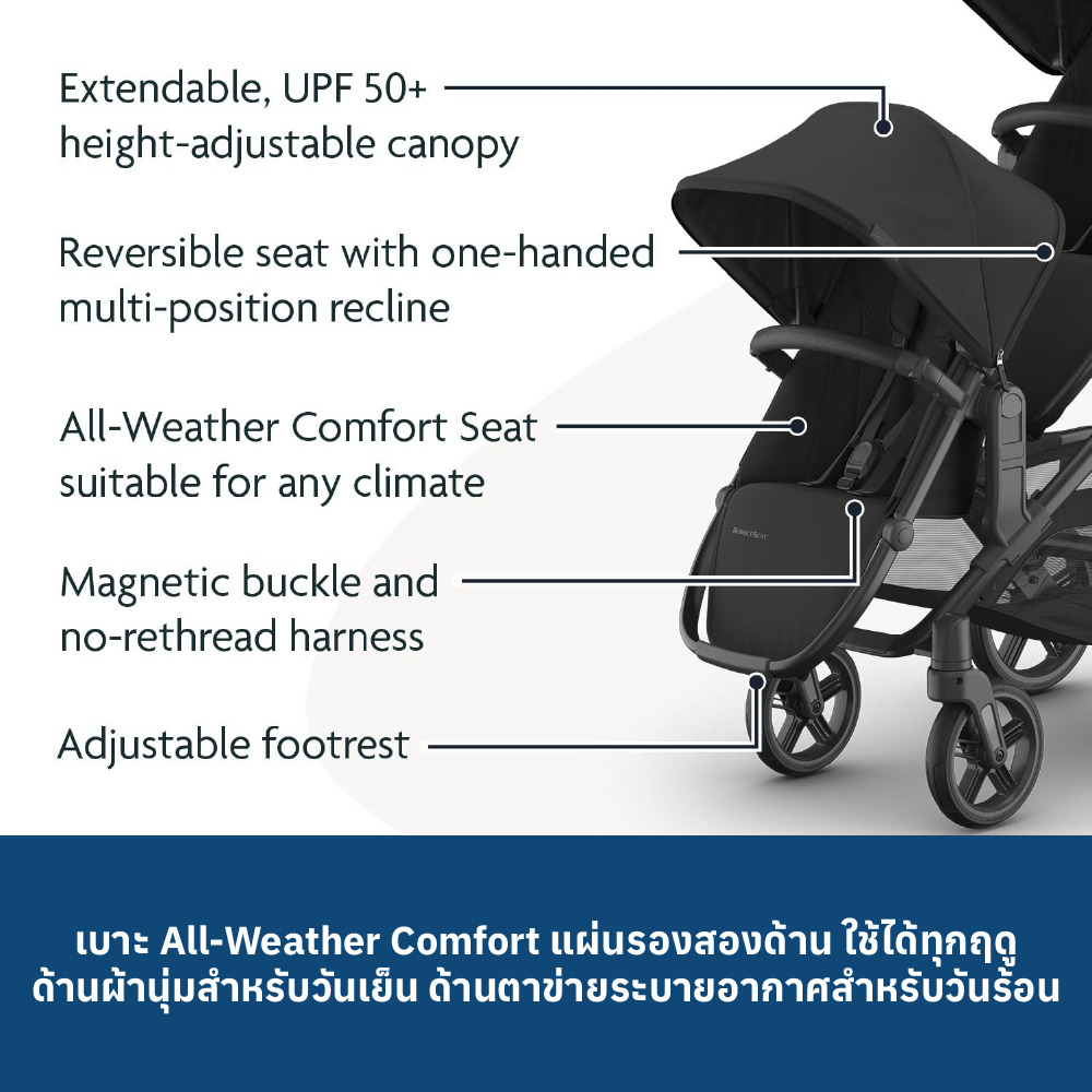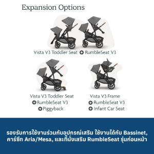 RumbleSeat V3 ถูกออกแบบมาเพื่อมอบความสะดวกสบายและความลงตัวสูงสุดสำหรับครอบครัวที่เติบโตขึ้น สามารถติดตั้งเป็นที่นั่งที่สองกับรถเข็น Vista ได้อย่างง่ายดายด้วยดุมขนาดใหญ่และอะแดปเตอร์ที่มาพร้อมในชุด ให้คุณพ่อคุณแม่ใช้งานได้อย่างราบรื่น
