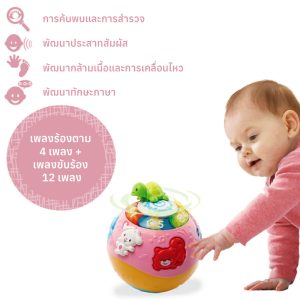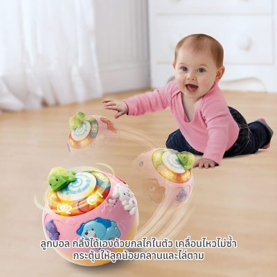 การเคลื่อนไหวแบบมีกลไก: ลูกบอลมี กลไกในตัวและกลิ้งไปเอง ในรูปแบบที่คาดเดาไม่ได้ทั่วพื้น กระตุ้นให้ทารกคลานตาม ซึ่งส่งเสริม การพัฒนาทักษะยนต์หยาบ