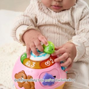 Interactive Animals: Features five chunky buttons shaped like friendly animals (e.g., dog, cat, bear) that are easy for little hands to press.