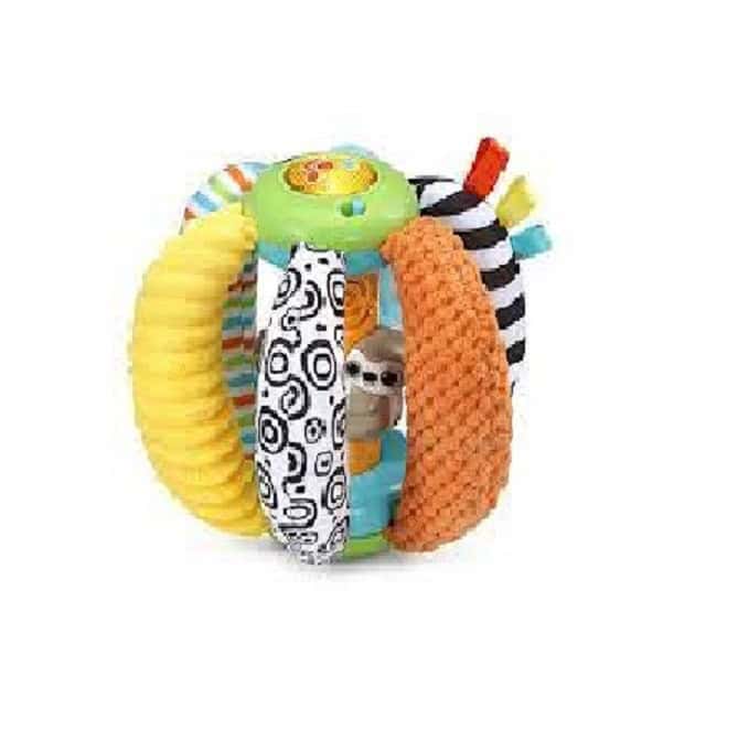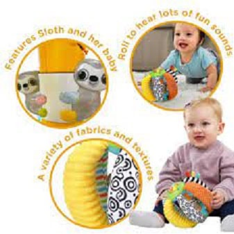• Wiggle, giggle and roll, roll, roll Sloth and her baby.• Light up button introduces fun phrases, sing-along songs and melodies.• Roll to hear lots of fun sounds.• Easy to grab sides make it easy for baby to roll.• A variety of fabrics and textures enhance tactile stimulation.• Bright, contrasting colours supports visual stimulation.• Includes 4 sing along songs & 16 melodies.