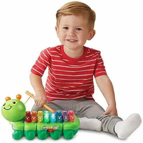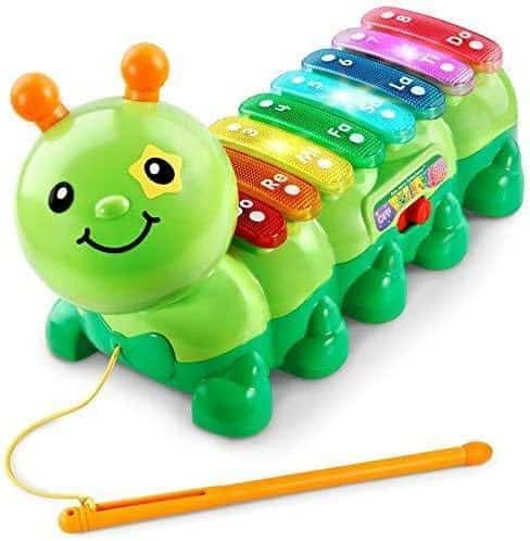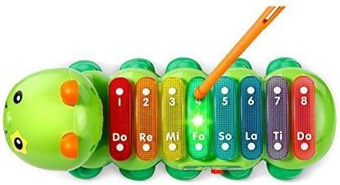 • This friendly caterpillar features eight colorful light-up bars that kids can tap with the mallet to create sounds.