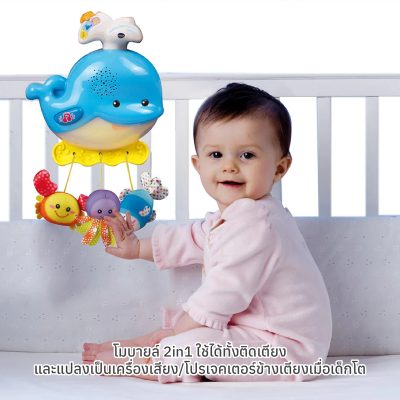สร้างสภาพแวดล้อมที่สงบและผ่อนคลายสำหรับลูกน้อยของคุณด้วย VTech Soothing Ocean Slumbers Mobile! โมบายล์ 2-in-1 ที่อเนกประสงค์นี้ออกแบบมาเพื่อช่วยให้ทารกแรกเกิดและทารกผ่อนคลายและหลับไป ด้วยการผสมผสานที่น่าอัศจรรย์ของดนตรีที่อ่อนโยน เสียงธรรมชาติ และการแสดงแสงที่ปลอบประโลม
