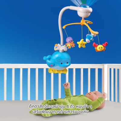 สัตว์ทะเลหมุนได้: มี ตุ๊กตาสัตว์ทะเลที่ทำจากผ้านุ่มน่ารักสี่ตัว (เช่น ปลา ปลาดาว) ที่หมุนอย่างอ่อนโยน ดึงดูดทักษะการติดตามด้วยสายตาของทารก