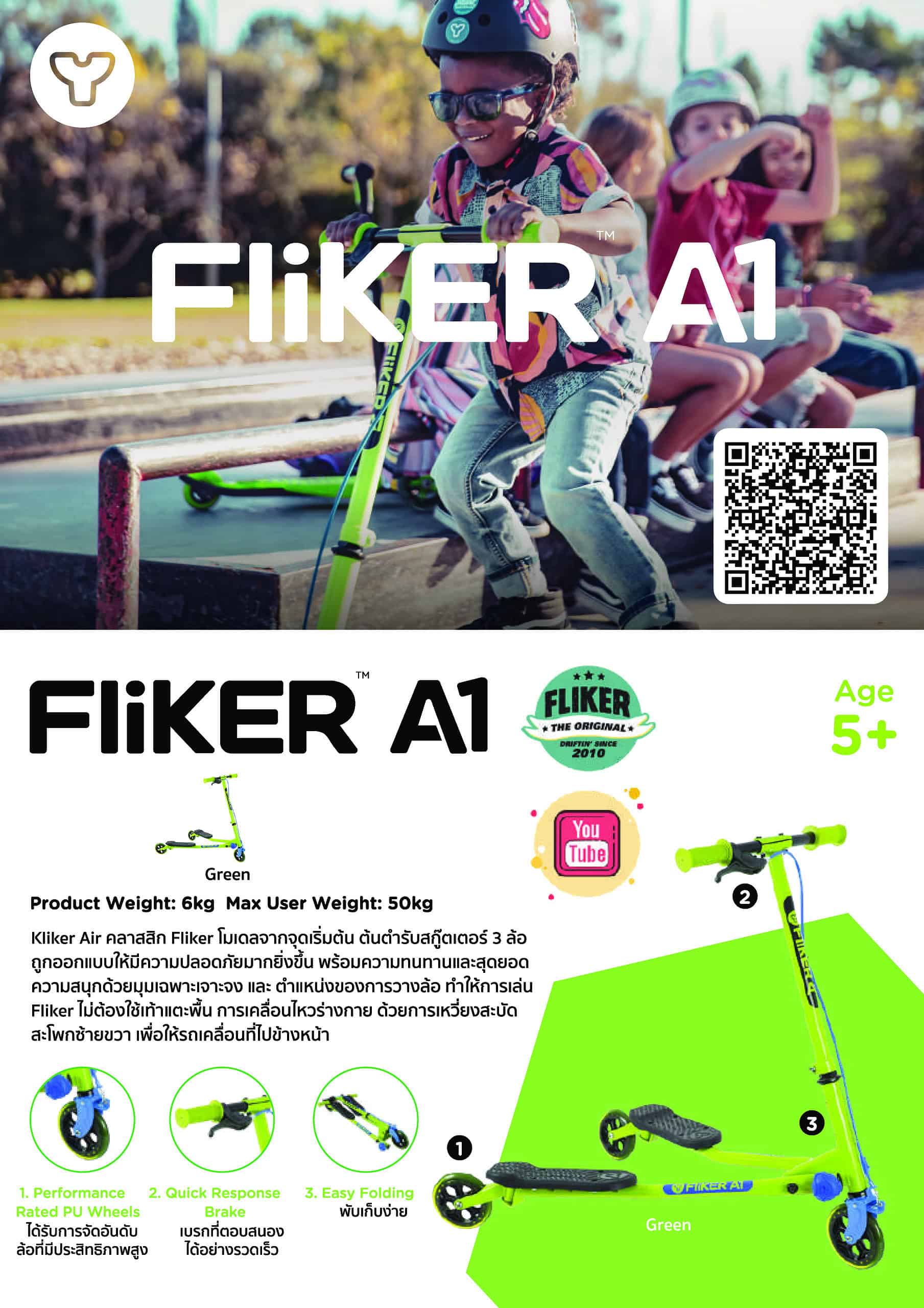 การออกแบบใหม่มาพร้อมกับเบรกที่ตอบสนองอย่างรวดเร็วเพื่อการควบคุมสูงสุด แผ่นรองเท้าที่ ได้รับการปรับปรุง เพื่อปลดล็อกศักยภาพในการดริฟท์ที่มากยิ่งขึ้น และล้อ PU ที่ออกแบบมาเพื่อให้แน่ใจว่า Y Fliker สามารถทนต่อการใช้งาน
